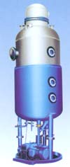 整个设备可分为加热蒸发室、加热夹套、汽液分离器、搅拌器等四部分。我厂在夹套加热的基础上经多方面研究,设计了内加热、内循环加热,蒸发结晶锅、用户使用后反映其蒸发效果比外加热(夹套加热)高1.8倍。